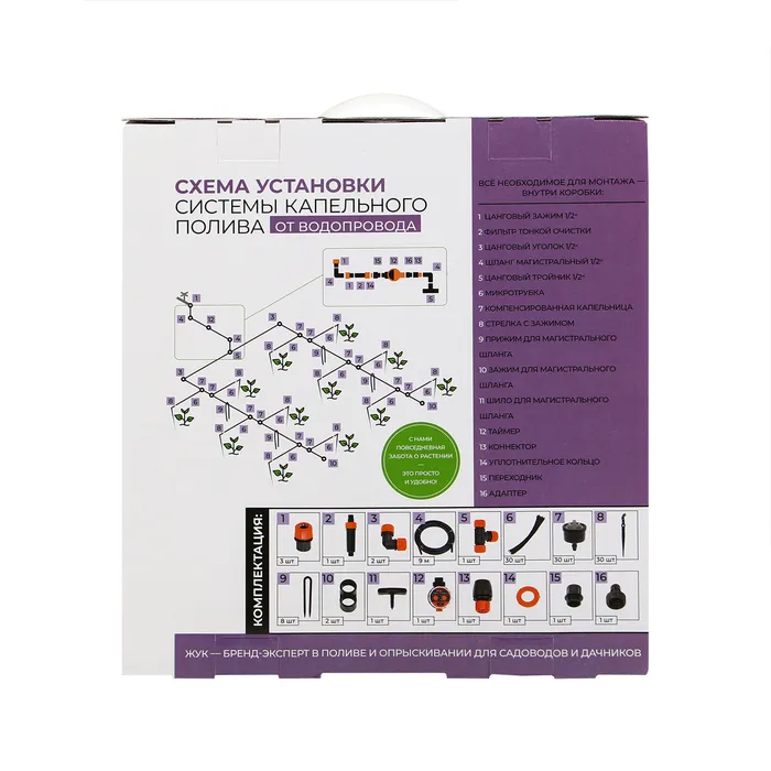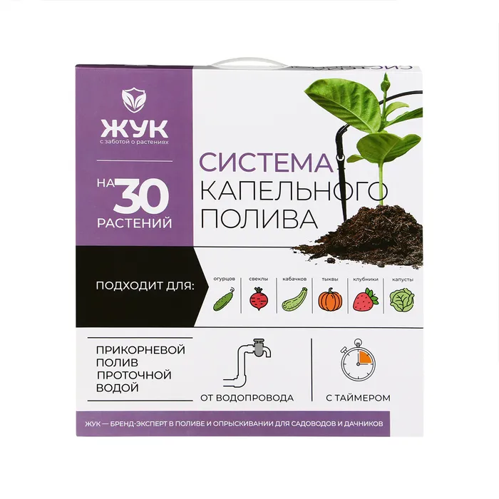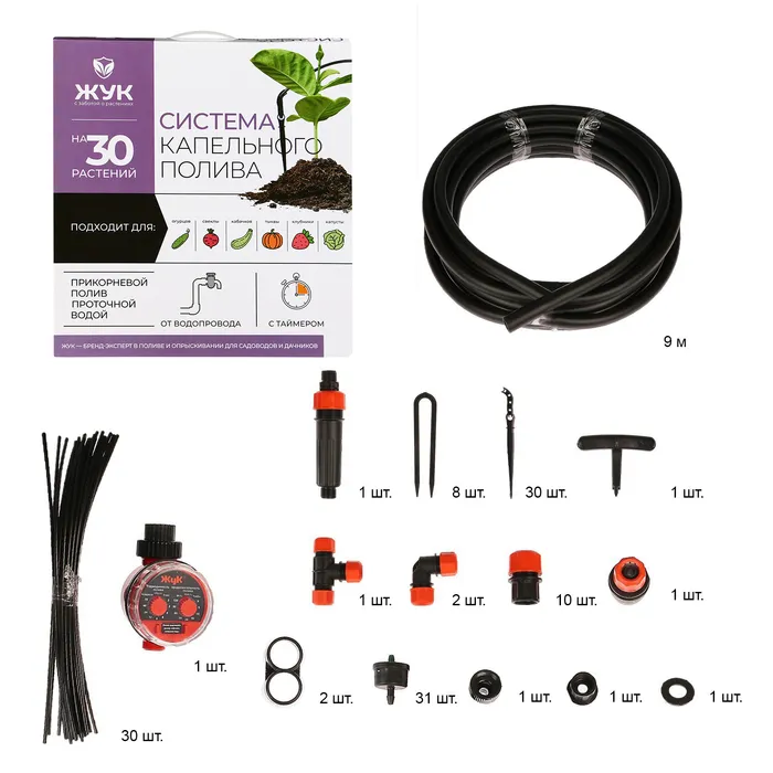 Набор капельного полива от водопровода, на 30 растений, с таймером, «Жук» — Характеристики