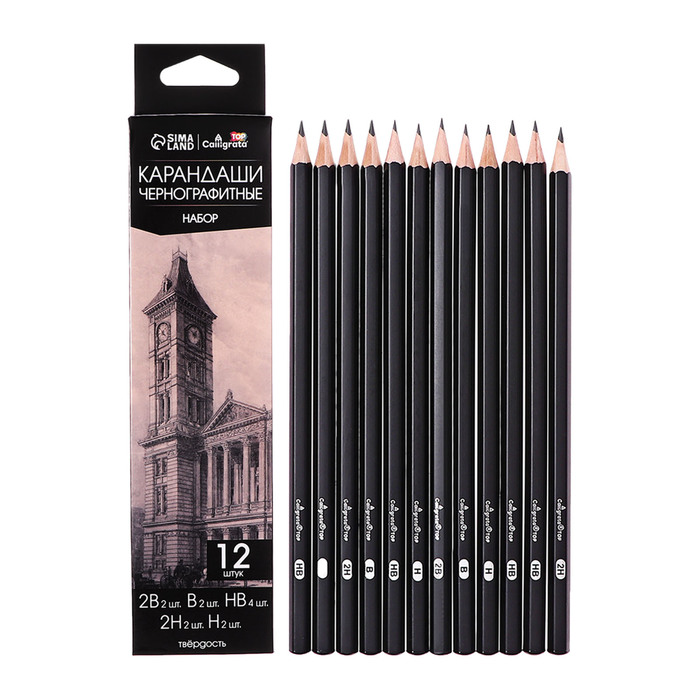 Набор карандашей чернографитных 12 штук (2шт-2В, 2шт-В, 4шт-НВ, 2шт-Н, 2шт-2Н) — Характеристики