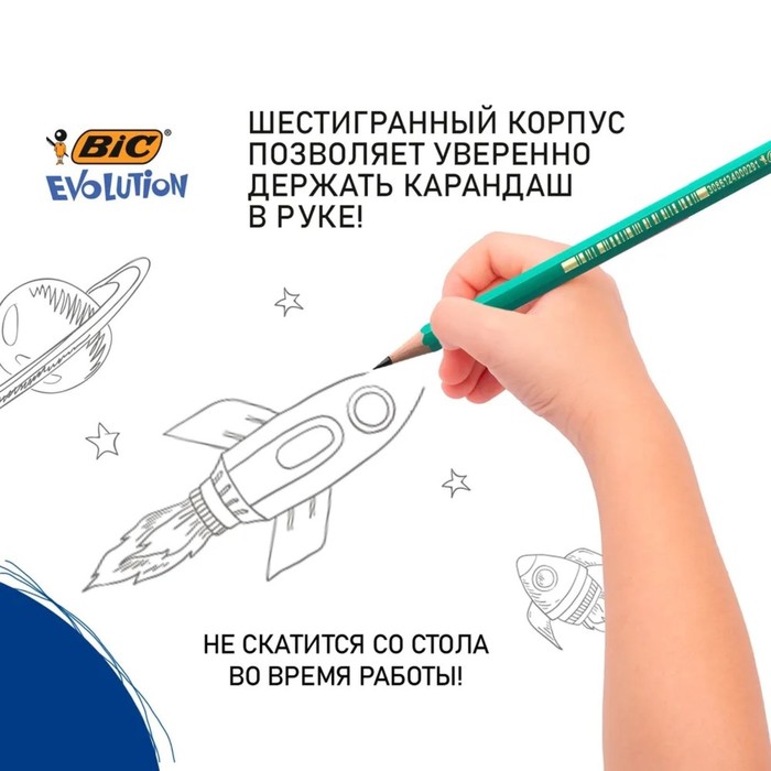 BIC Evolution Original - единственный в своём классе чернографитовый карандаш, изготовленный без древесины. Уникальный высокотехнологичный производственный процесс с использованием метода четырехэтапной экструзии делает его превосходным пишущим инструментом, который устойчив к ударам, не боится быть погрызенным и не образует острых краёв на изломе. Произведён в Европе и на 57% из переработанных материалов - вот в чём секрет легендарного твёрдо-мягкого HB карандаша BIC Evolution Original.