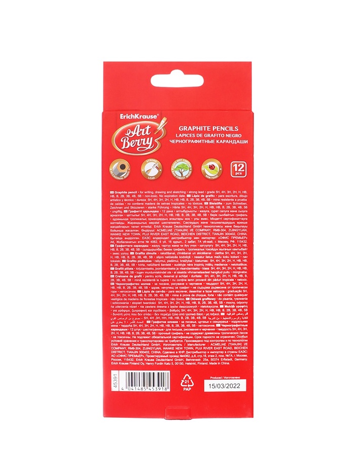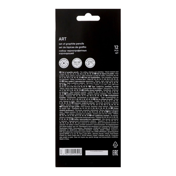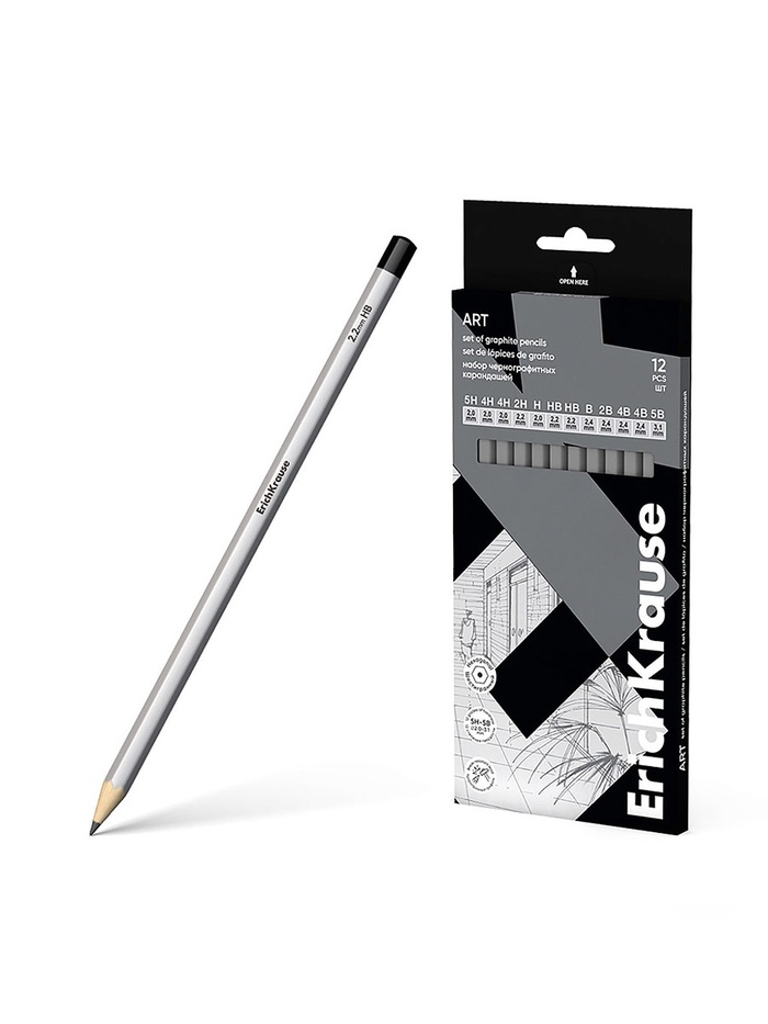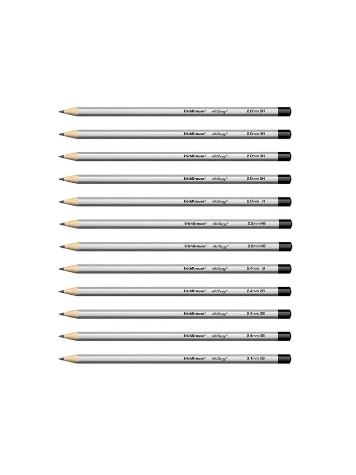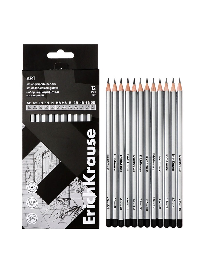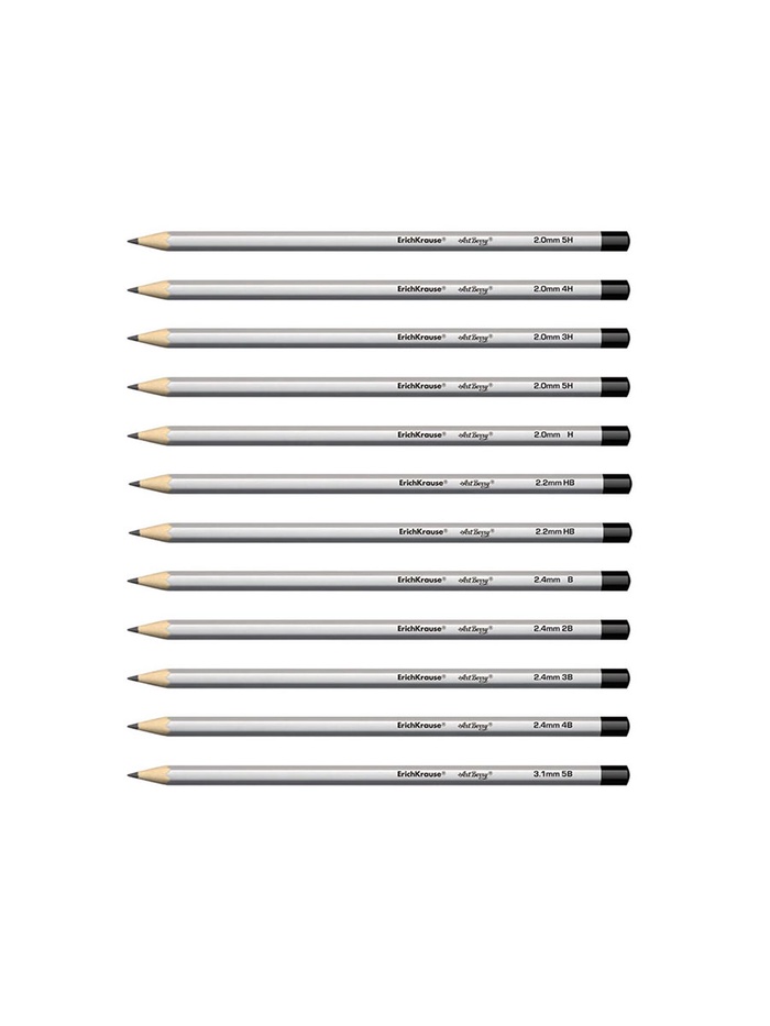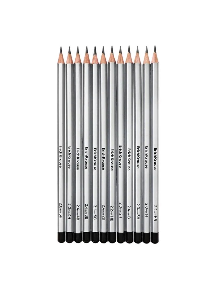 Набор карандашей чернографитных различной твердости 12 штук, ErichKrause, грифель d=2.2 мм, шестигранные, ударопрочные, серебро, в коробке — Характеристики