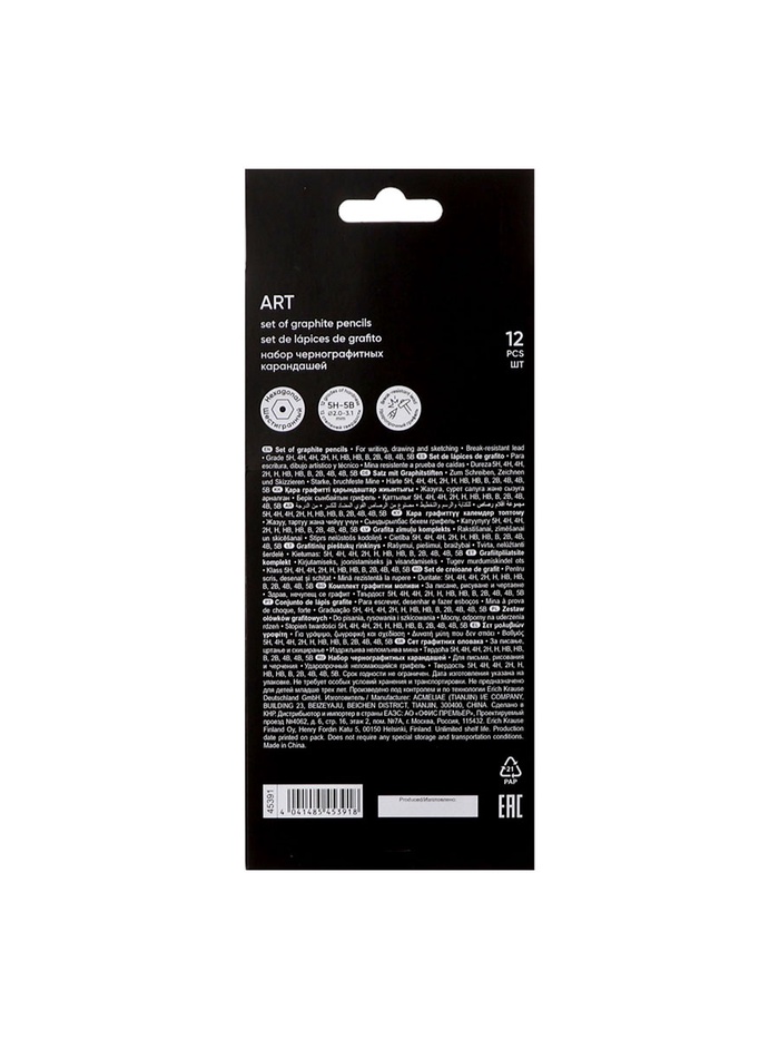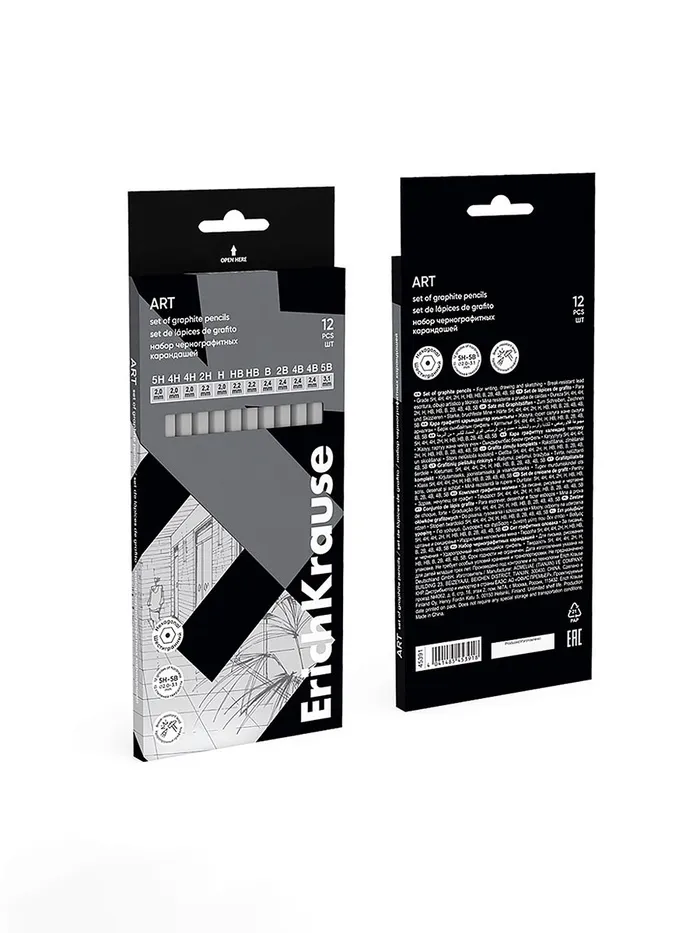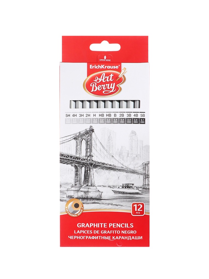 Классические шестигранные чернографитные карандаши различной степени твердости. Рекомендуются для выполнения художественных работ, графических зарисовок и чертежей. Грифель диаметром 2,2мм не царапает бумагу и не крошится. Насыщенность каждого графитового оттенка зависит от степени его жёсткости. Специальная пропитка древесины и сплошная проклейка грифеля обеспечивает высокую ударопрочность. Мягкая древесина и идеальная центровка грифеля гарантируют легкую заточку с экономным расходом карандаша.