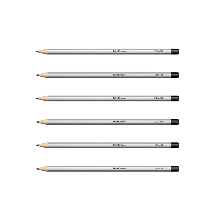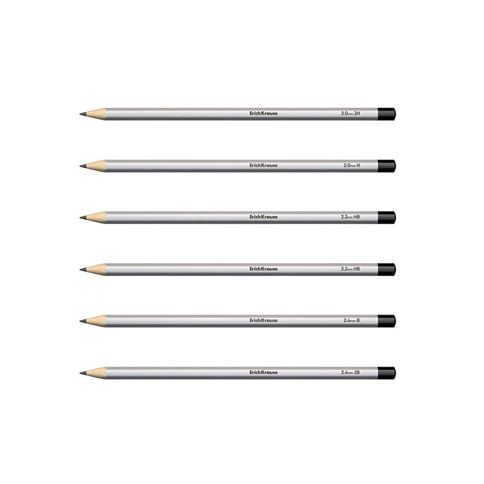Набор карандашей чернографитных различной твердости 6 штук, ErichKrause, грифель d=2.2 мм, дерево, шестигранные, ударопрочные, серебро, в коробке — Характеристики