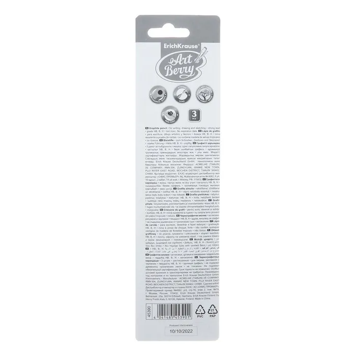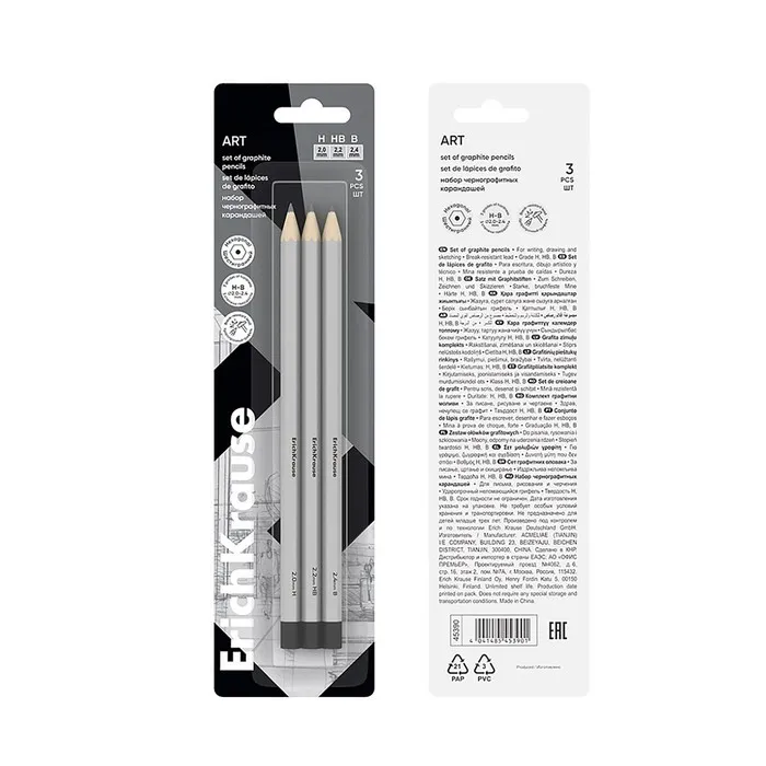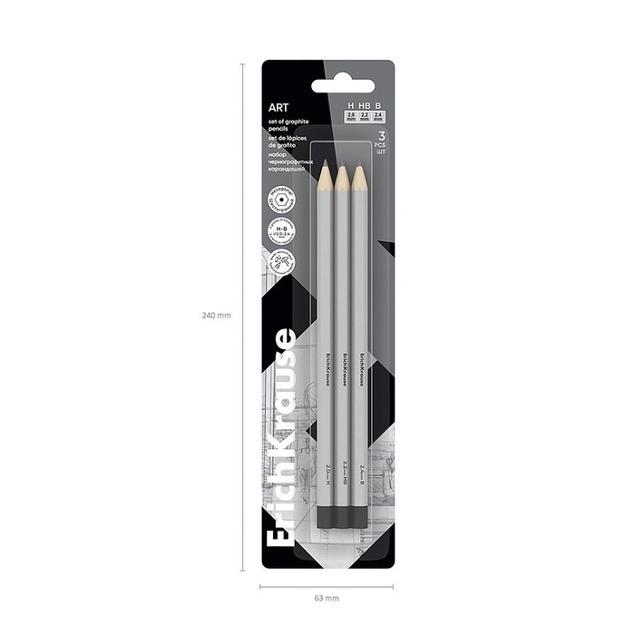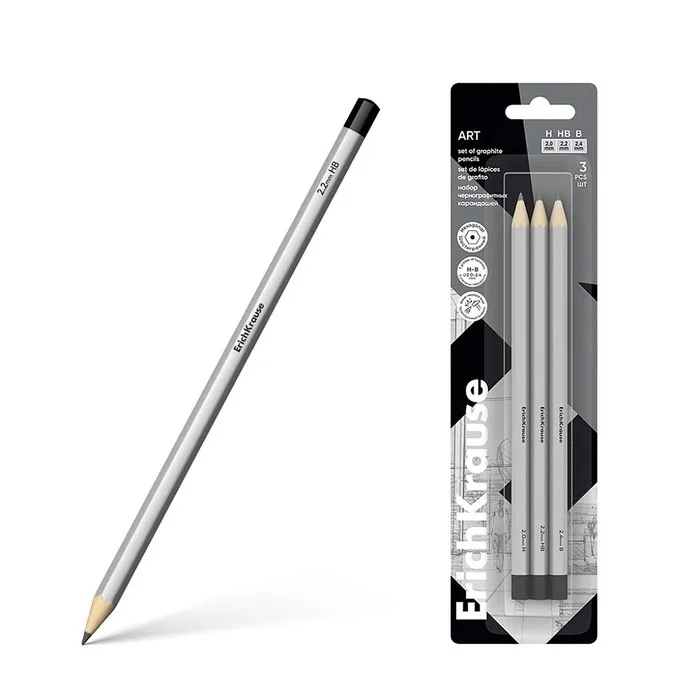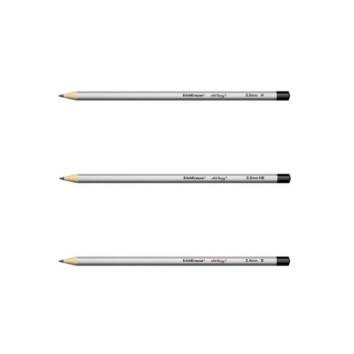 Набор карандашей чернографитных разной твердости 3 штуки Erich Krause, грифель d=2.2 мм, шестигранные, серебро, в в блистерее — Характеристики