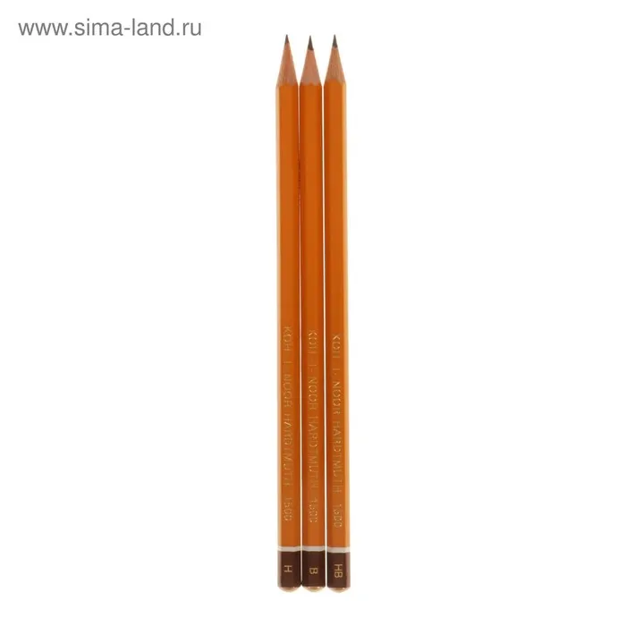 Набор карандашей чернографитных разной твердости 3 штуки Koh-I-Noor 1500/3, HB, B, H, в пакете — Характеристики