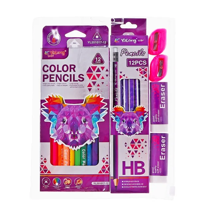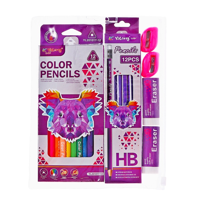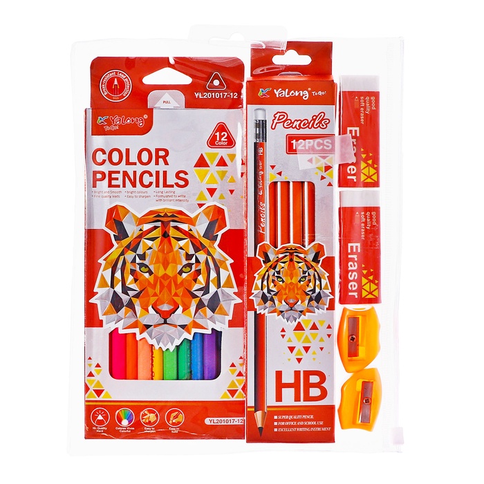 Набор карандашей ч/г 12 шт, цветные 12 шт, 2 точилки, 2 ластика, в папке на молнии МИКС — Характеристики