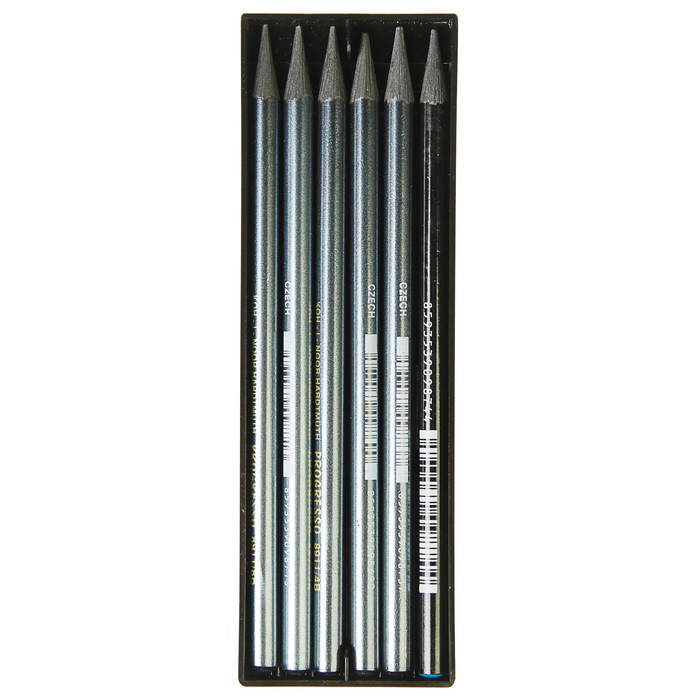 Разная твёрдость в наборе помогает вести работу от лёгких набросков до плотных заливок и глубоких акцентов. Штрих получается насыщенным и живым. Такой формат особенно удобен для скетчинга, академического рисунка и поисковых эскизов.
