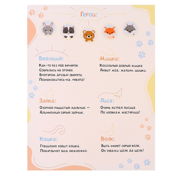 - В комплекте представлены пять масок и сценарий игры, которые можно использовать как для игр в кругу семьи, так и для массовых мероприятий.