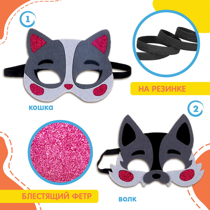 - Маски выполнены из фетра с блестящим покрытием, оно добавляет им яркости и праздничного вида.