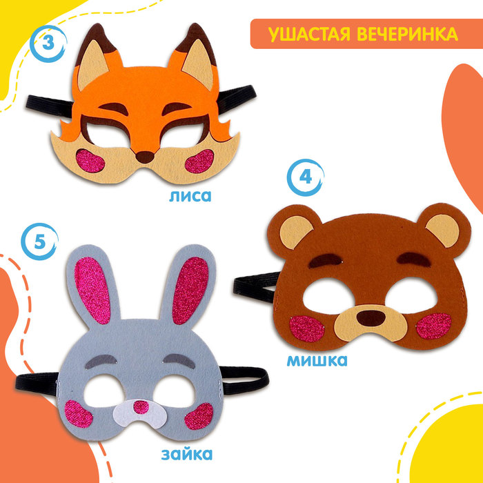 Набор карнавальных масок «Ушастая вечеринка», 5 шт., фетр — Характеристики