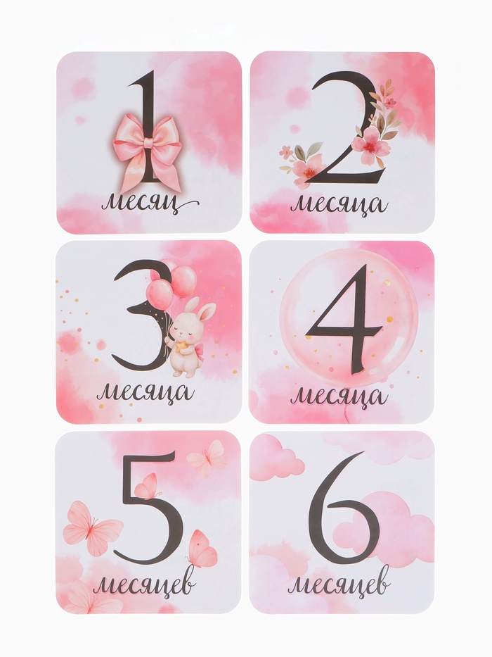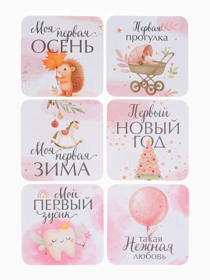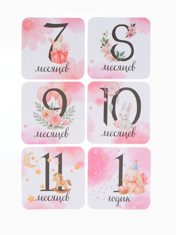Они помогают создать целую историю первого года жизни малыша: отмечать каждый месяц, фиксировать новые достижения и наполнять семейный альбом атмосферой нежности. Карточки легко разместить рядом с ребёнком или использовать как красивый элемент композиции — результат всегда получается выразительным и аккуратным.