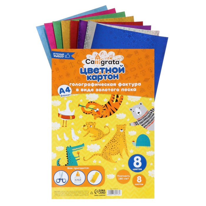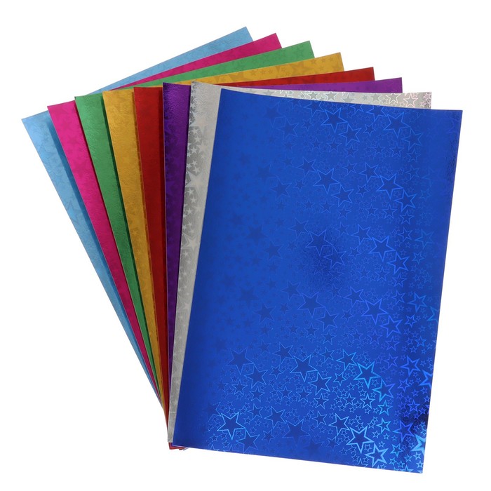 Набор картона голографического формат А4, 8 лист, 8 цвет, плотность 180г/м2 ЗВЕЗДЫ — Характеристики