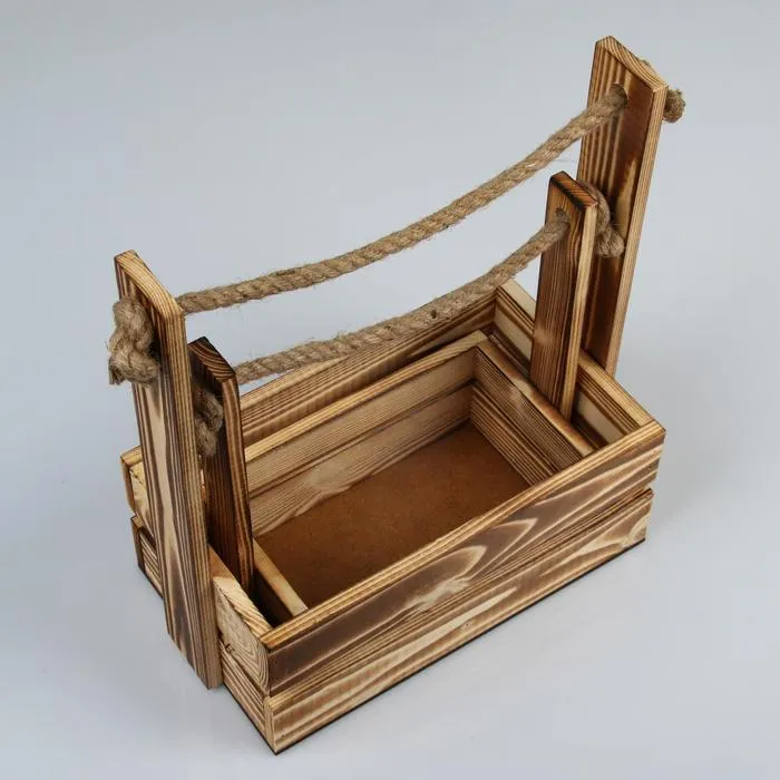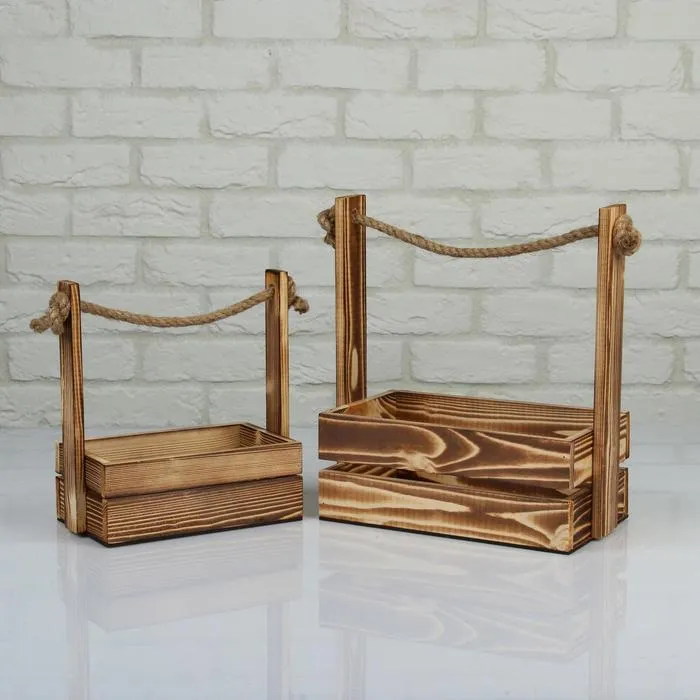 Набор кашпо деревянных 2 в 1 (25.5×15×30; 20×12×23 см) "Аром", ручка канат, обожженный — Характеристики