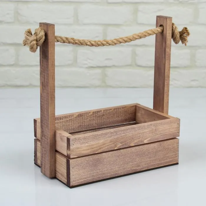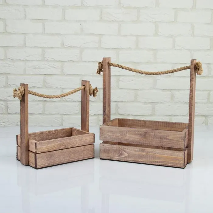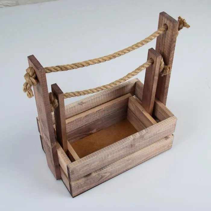 Набор кашпо деревянных 2 в 1 (25.5×15×30; 20×12×23 см) "Аром", ручка канат, состаренный дуб — Характеристики