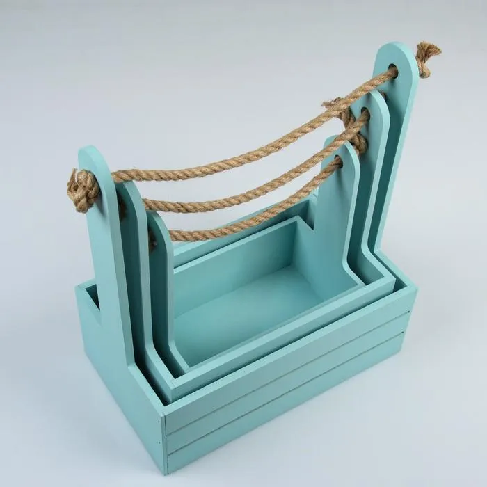 Набор кашпо деревянных 3 в 1 (30.5×18.5×35; 25.5×15×30; 20×12×23) "Аром", серо-голубой — Характеристики