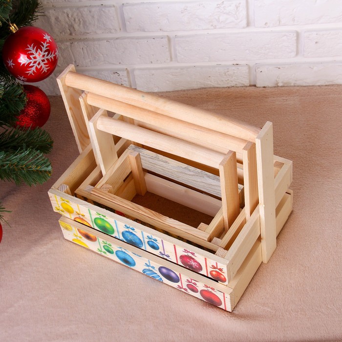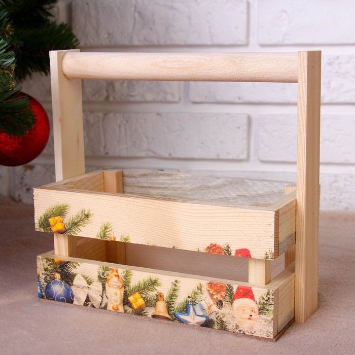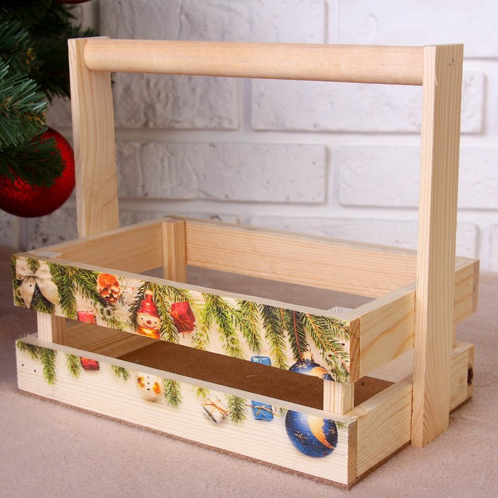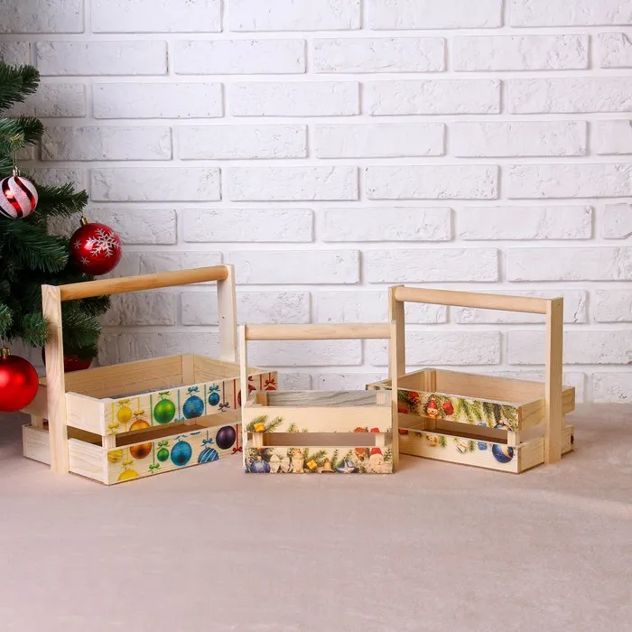 Набор кашпо деревянных "Новогодний №3" 3 в 1, МАССИВ СОСНЫ, деревянная ручка, натуральный — Характеристики