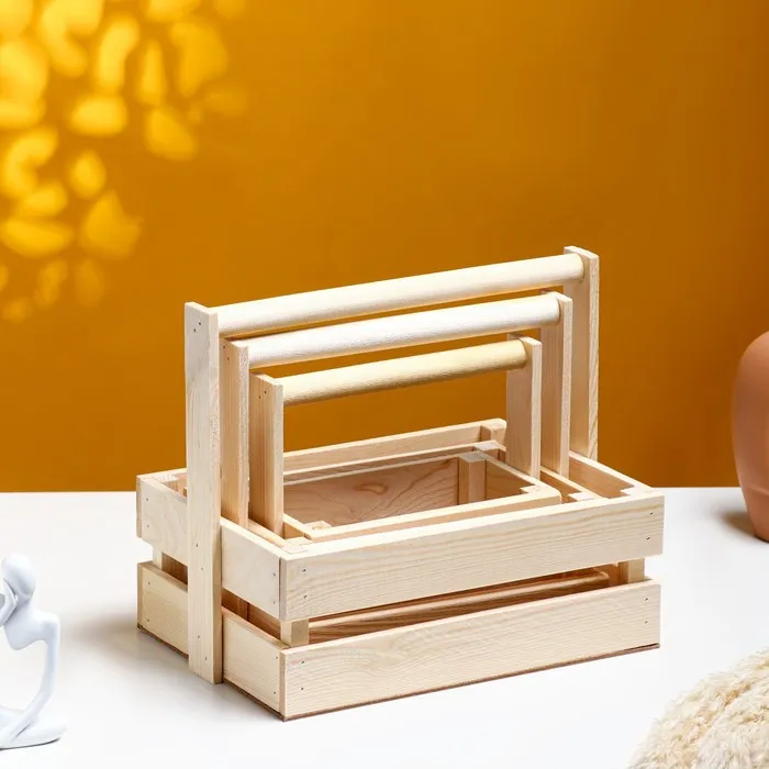 Набор кашпо деревянных подарочных "Модерн", 3 в 1, с ручкой, натуральный — Характеристики