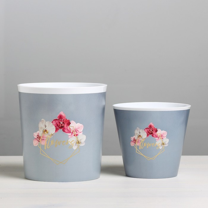 Набор кашпо для цветов 2 в 1 Flowers, тиснение, 0.8 и 1.6 л, 11×12 и 14×14 см — Характеристики