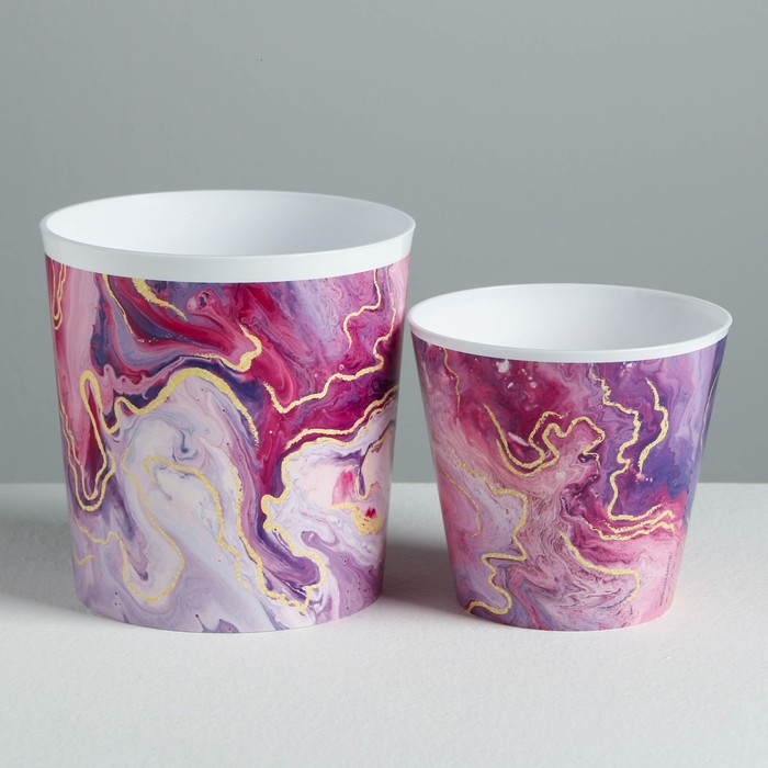 Набор кашпо «Мрамор», 2 в 1 — это дуэт для создания элегантной и стильной композиции. Кашпо с розовым мраморным узором выглядят изысканно, добавляя интерьеру лёгкую роскошь. Разница в размерах позволяет составлять сбалансированные пары и подбирать ёмкость под растение нужного объёма.