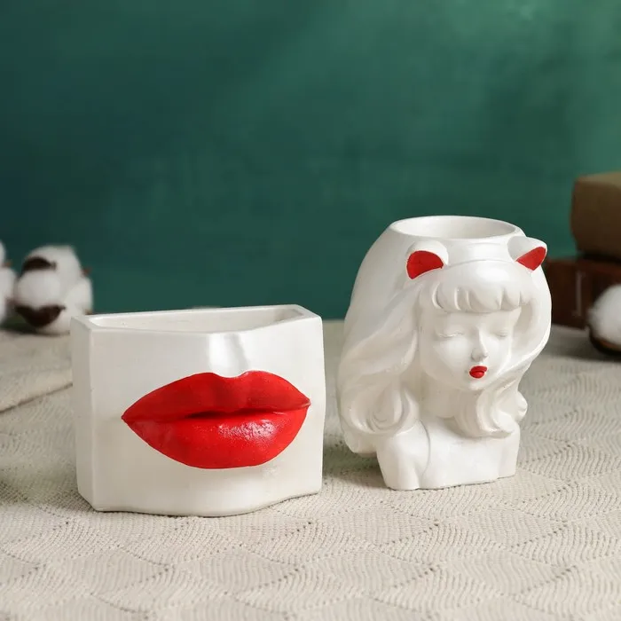 Набор кашпо "Губы и девушка" 2 шт, перламутр с красным, 15см — Характеристики