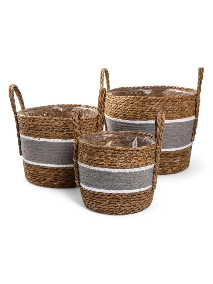 Набор кашпо «Инга», 3 шт., 20.5×25 – 25.5×28 – 27×33 см, серая полоса — Характеристики