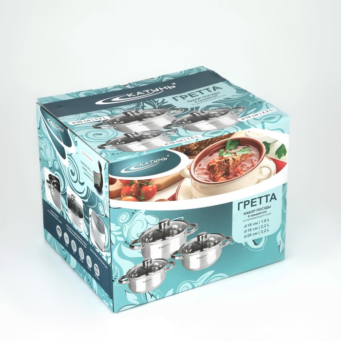 Набор кастрюль из нержавеющей стали «Гретта», 3 предмета: 1,6 л, 2,2 л, 3,2 л, капсульное дно, индукция — Характеристики