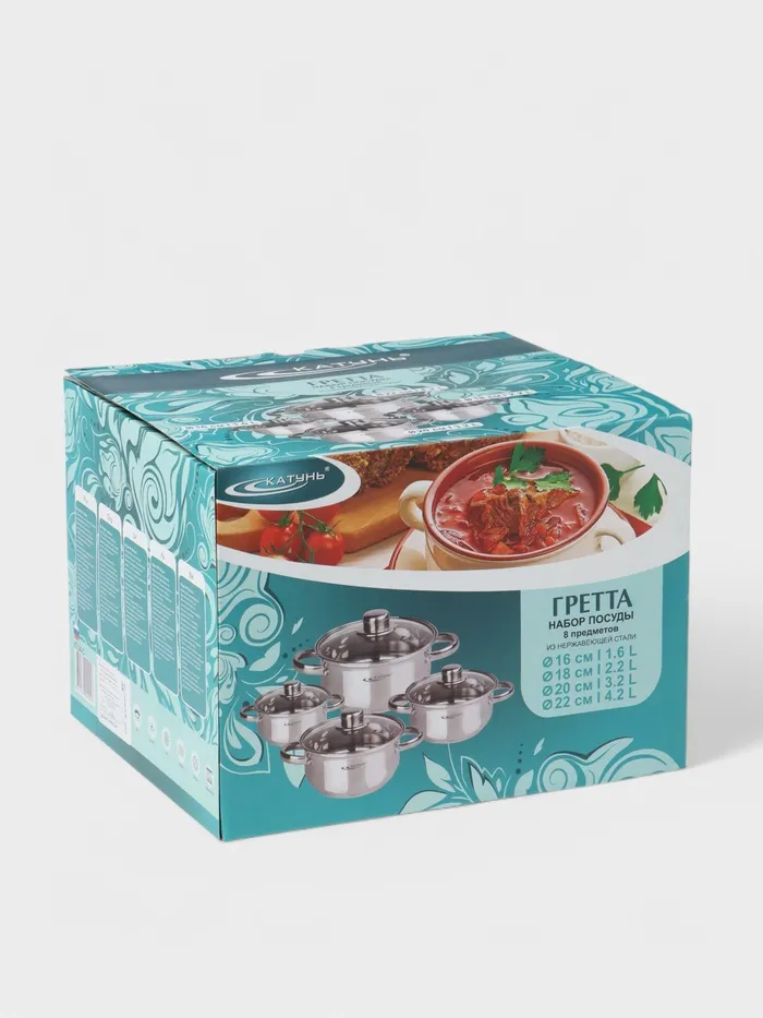 Набор кастрюль из нержавеющей стали «Гретта», 4 предмета: 1,6 л, 2,2 л, 3,2 л, 4,2 л, капсульное дно, индукция — Характеристики