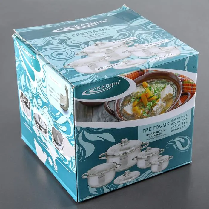 Набор кастрюль из нержавеющей стали «Гретта», 4 предмета: 1,8 л, 2,5 л, 3,4 л, 4,5 л, капсульное дно, индукция — Характеристики