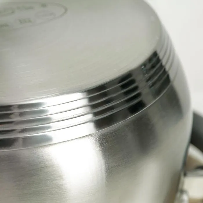 - Устойчивость к коррозии. Материал не ржавеет и не окисляется, что делает кастрюлю безопасной для приготовления пищи.
