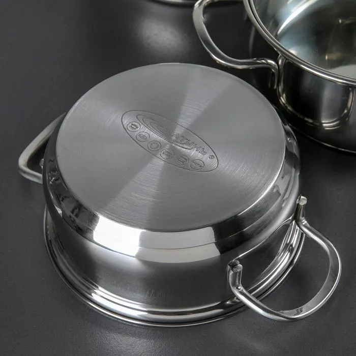 Набор кастрюль из нержавеющей стали «Лира», 3 предмета: 1,6 л, 2,2 л, 3,2 л, капсульное дно, индукция — Характеристики