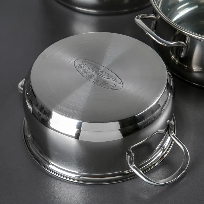 Набор кастрюль из нержавеющей стали «Лира», 3 предмета: 2,2 л, 3,2 л, 4,2 л, капсульное дно, индукция — Характеристики