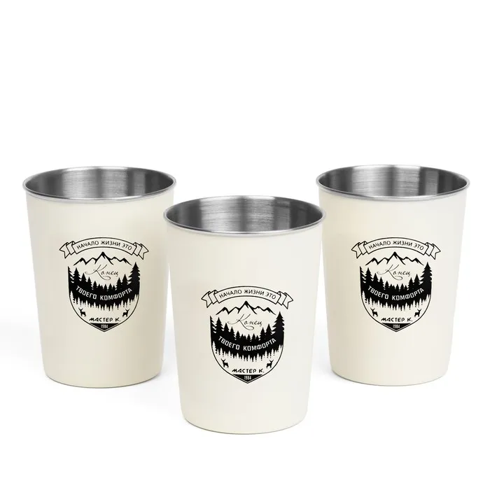 Набор стаканов из 3 штук по 320 мл из пищевой нержавеющей стали с удобным и компактным холщевым мешочком с завязками для хранения и переноски. Отлично подходит для любителей охоты, рыбалки и людей любящих вылазки на природу, в горы, путешествия. Легкие и компактные, удобно брать с собой на отдых.