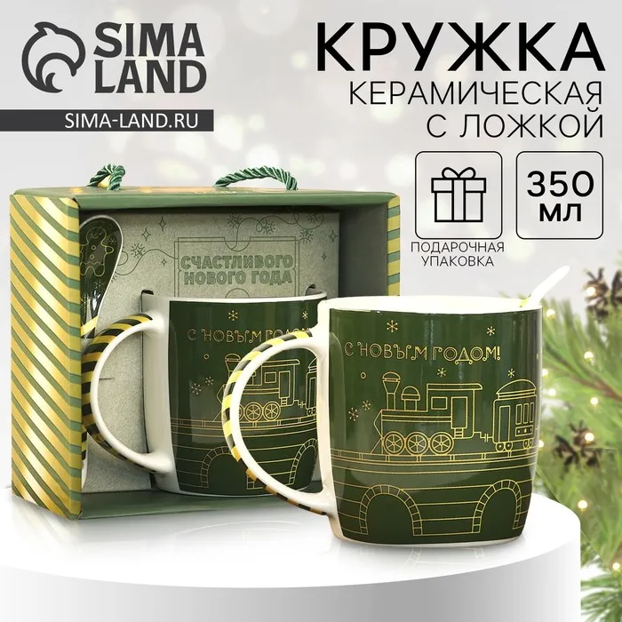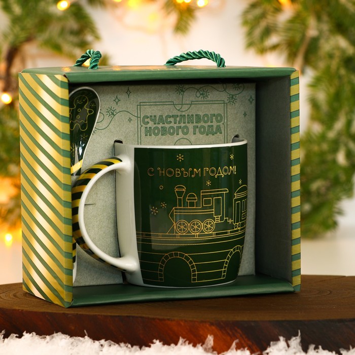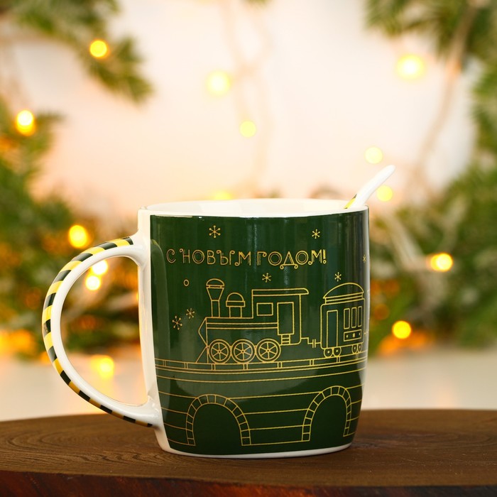 Набор керамический «С Новым годом»: кружка 350 мл, ложка, цвет зелёный — Характеристики