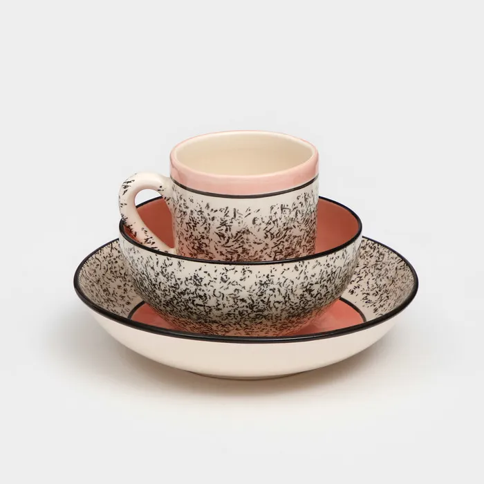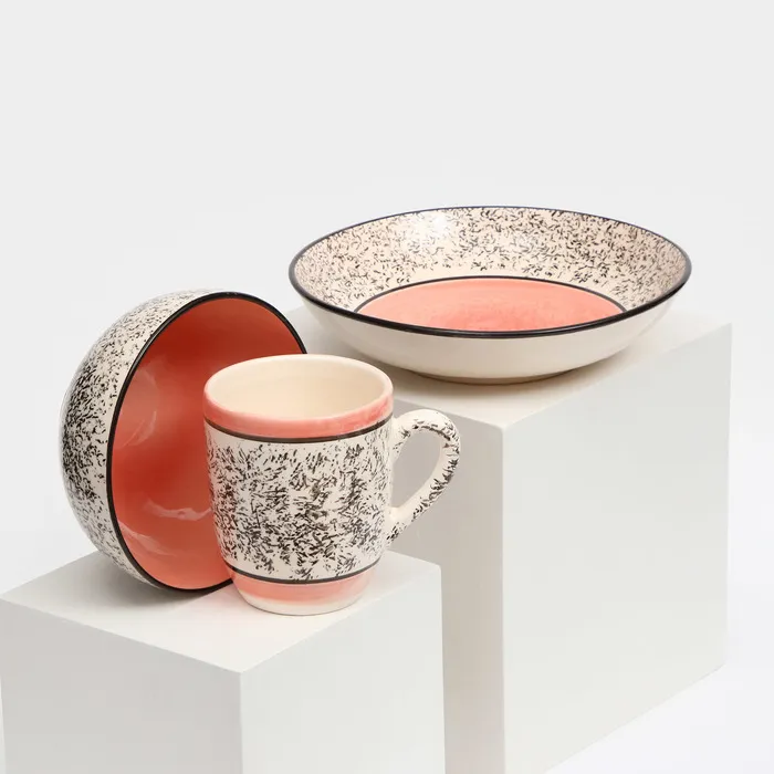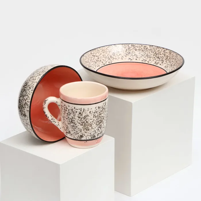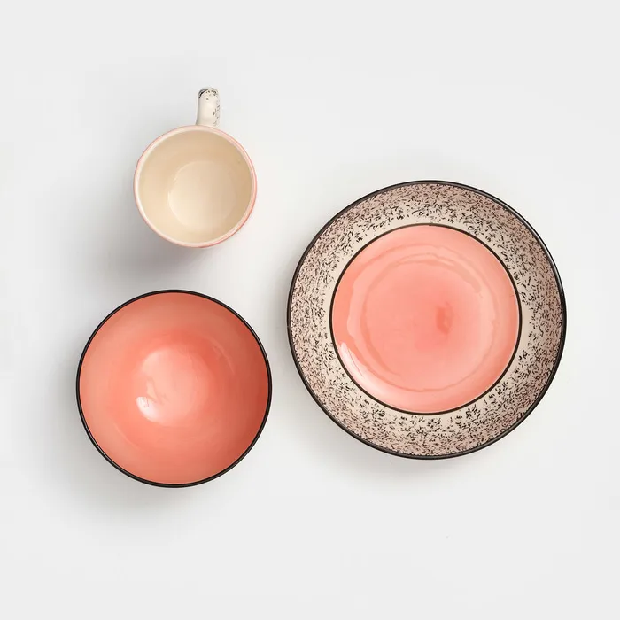 Набор керамической посуды «Алладин», 3 предмета: салатник 700 мл, тарелка 20 см, кружка 350 мл, розовый, 1 сорт, Иран — Характеристики