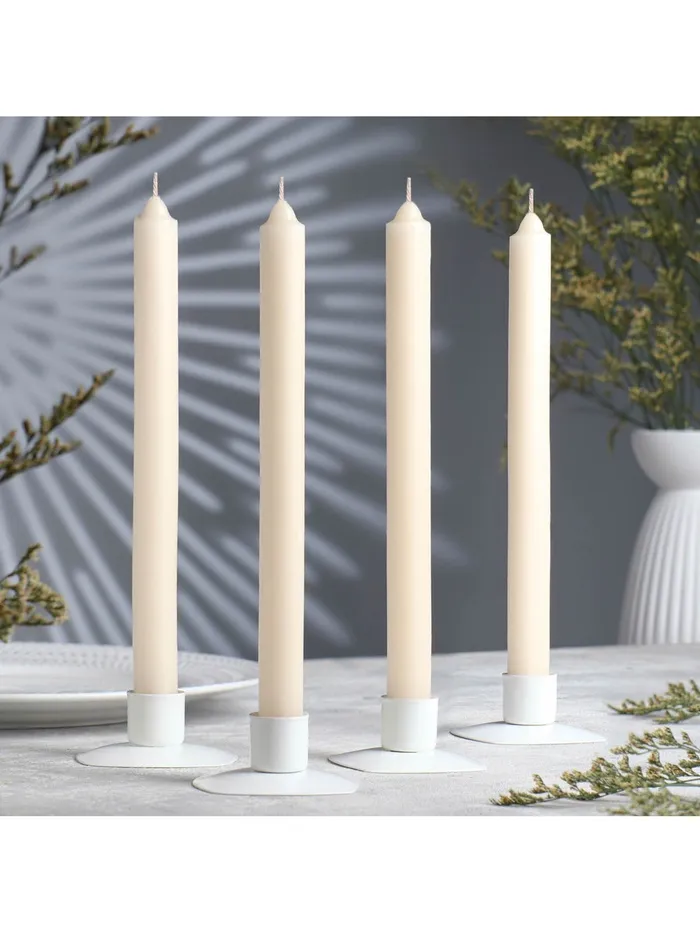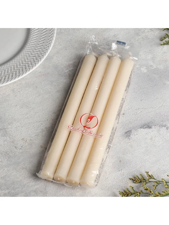 Каждая свеча обладает выверенными параметрами: диаметром 1,9 см, высотой 24,5 см и массой 65 граммов. Благодаря этому они хорошо держатся в подсвечникеи гарантируют стабильное горение на протяжении 9 часов. Восковой состав из высококачественного парафина обеспечивает равномерное сгорание без копоти и неприятного запаха.