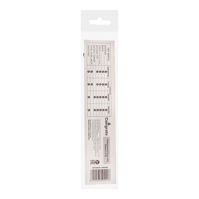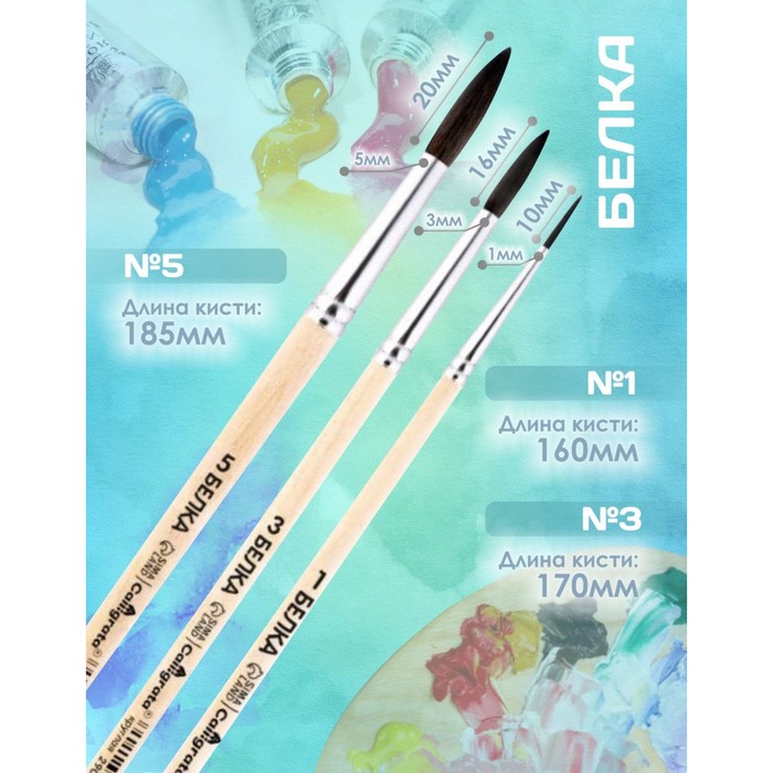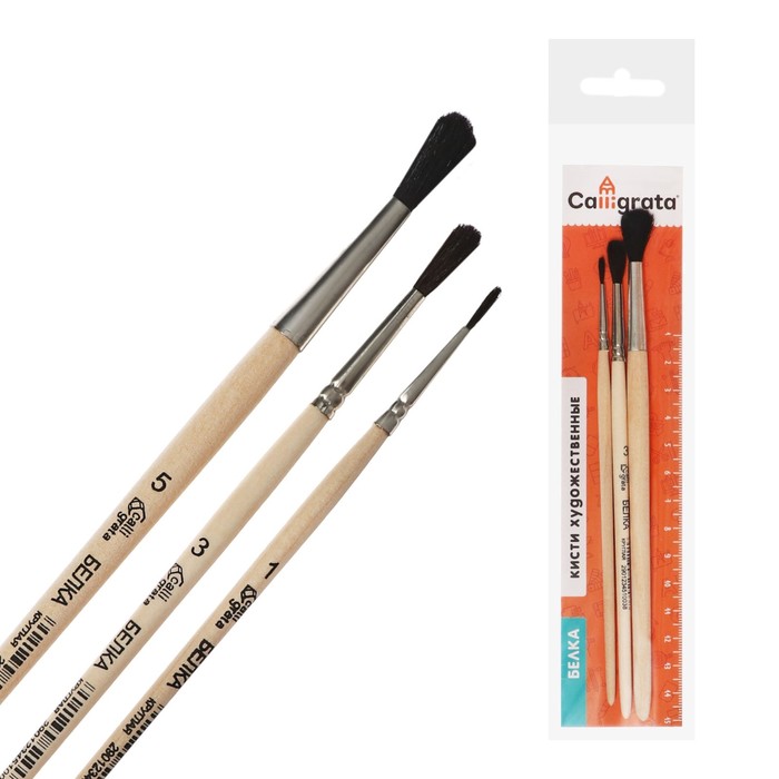 Набор кистей Белка 3 штуки, Calligrata №1 (круглые №: 1, 3, 5), деревянная ручка — Характеристики