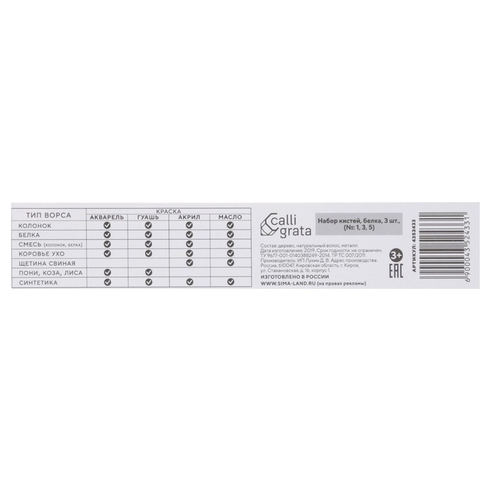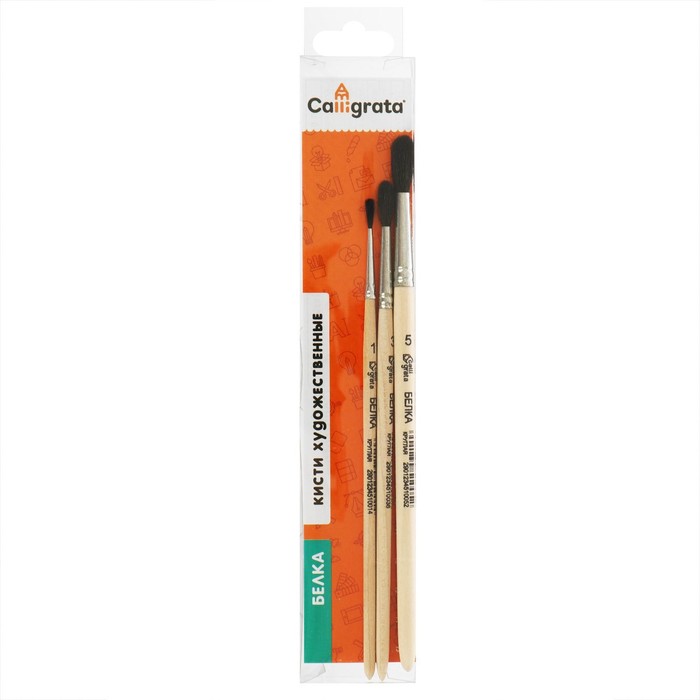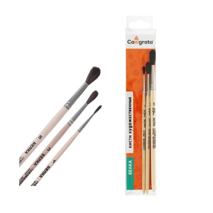 Набор кистей Белка 3 штуки, Calligrata №1 (круглые №: 1, 3, 5), деревянная ручка, в пенале — Характеристики