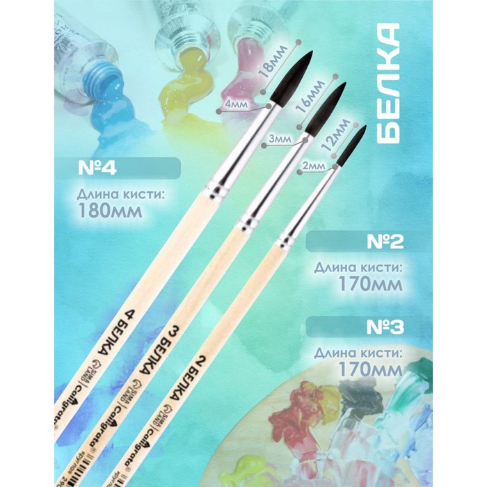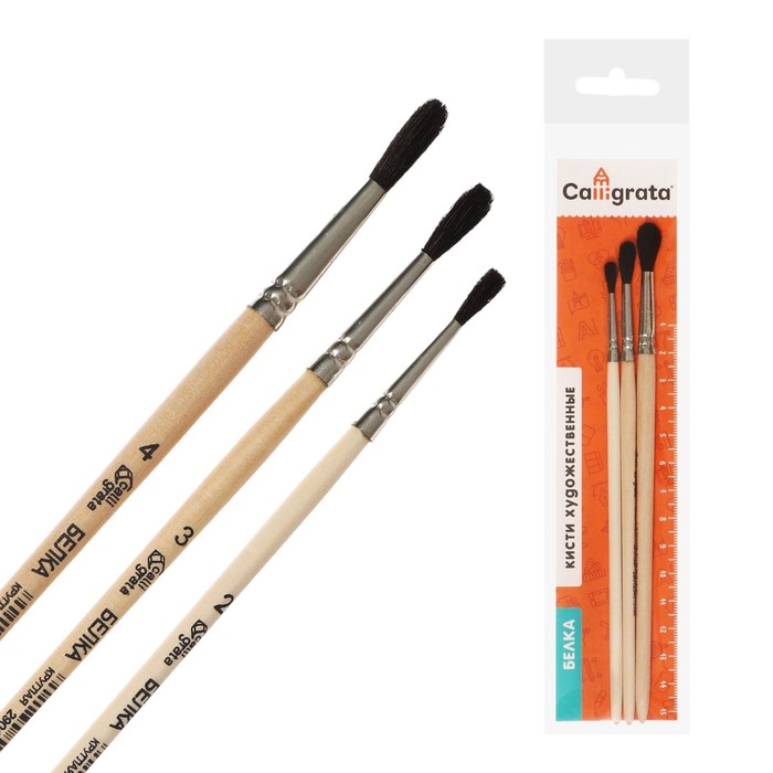 Набор кистей Белка 3 штуки, Calligrata №2 (круглые №: 2, 3, 4), деревянная ручка — Характеристики