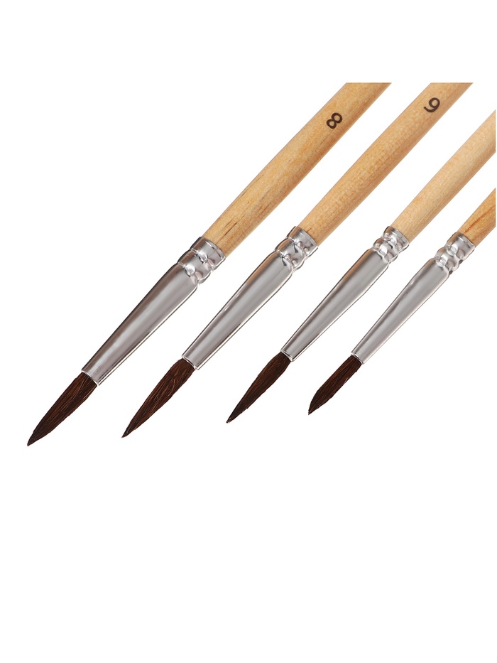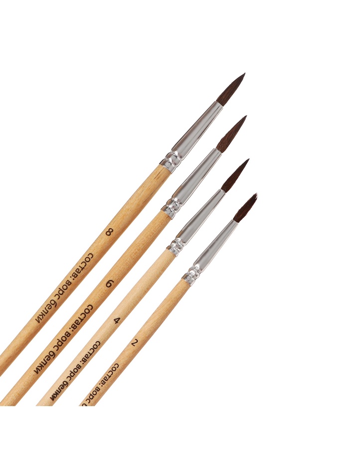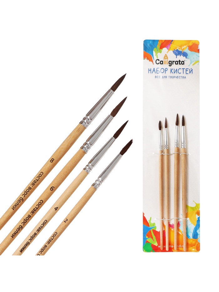 Набор кистей белка, Calligrata, круглые, 4 штук (№2,4,6,8) с деревянными ручками, в блистере — Характеристики