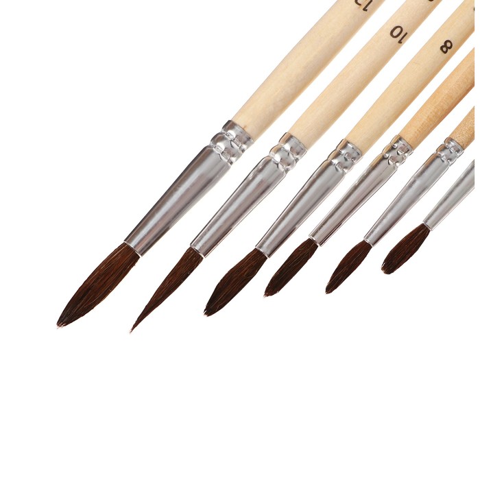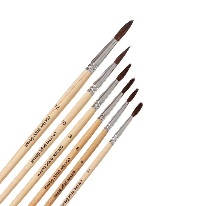 Набор кистей белка, Calligrata, круглые, 6 штук (№2,4,6,8,10,12) с деревянными ручками, в блистере — Характеристики