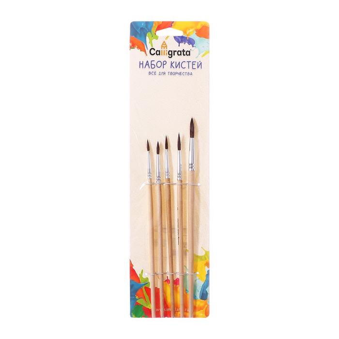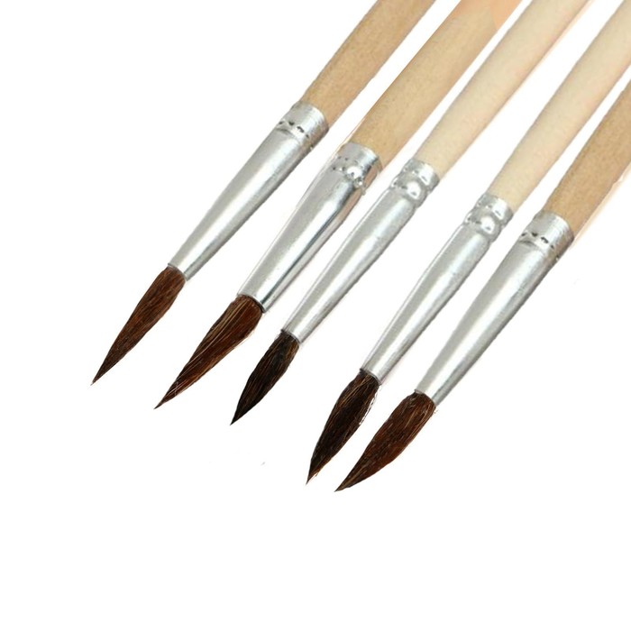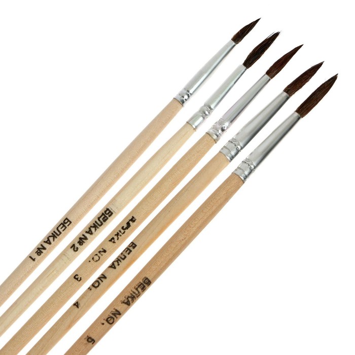 Набор кистей белка круглые 5 штук (№1,2,3,4,5) с деревянными ручками на блистере — Характеристики