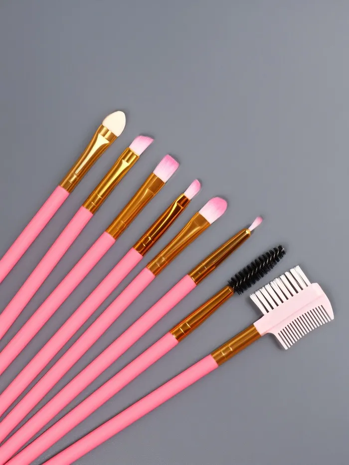 Набор кистей для макияжа, 12 предметов, футляр, розовый — Характеристики