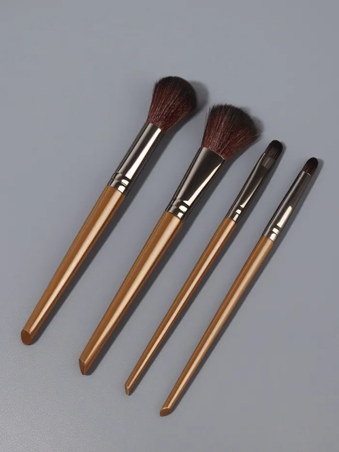 Познакомьтесь с набором кистей для макияжа, который станет вашим надежным помощником в создании безупречного образа. Этот комплект из 4 предметов в стильной коричневой упаковке идеально подходит для работы с глазами и бровями, обеспечивая точное и аккуратное нанесение косметики.
