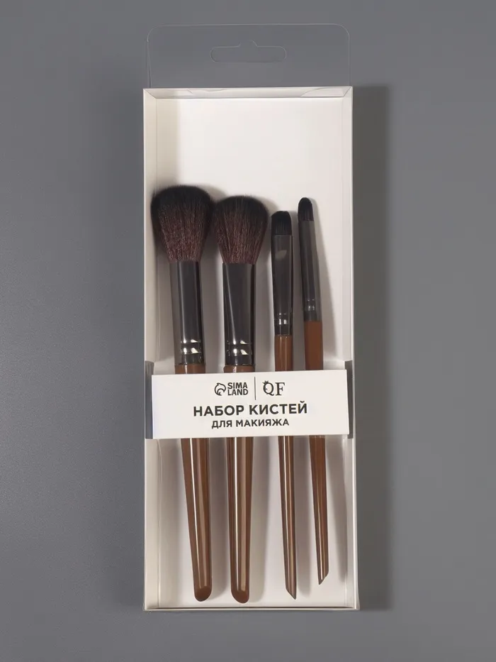 Набор кистей для макияжа, 4 предмета, 15.5 (±1) см, PVC-коробка, коричневый — Характеристики