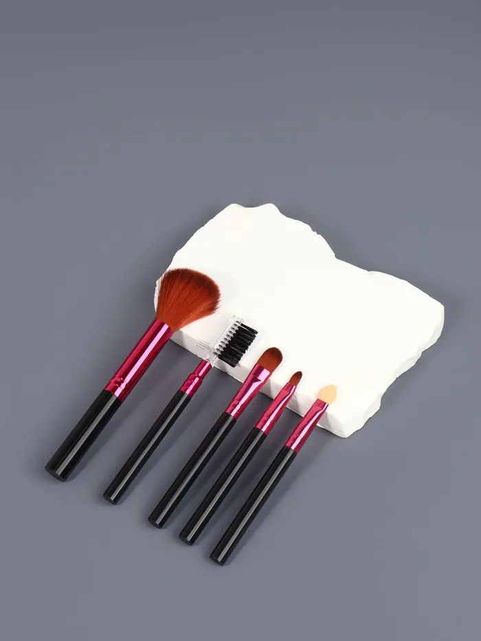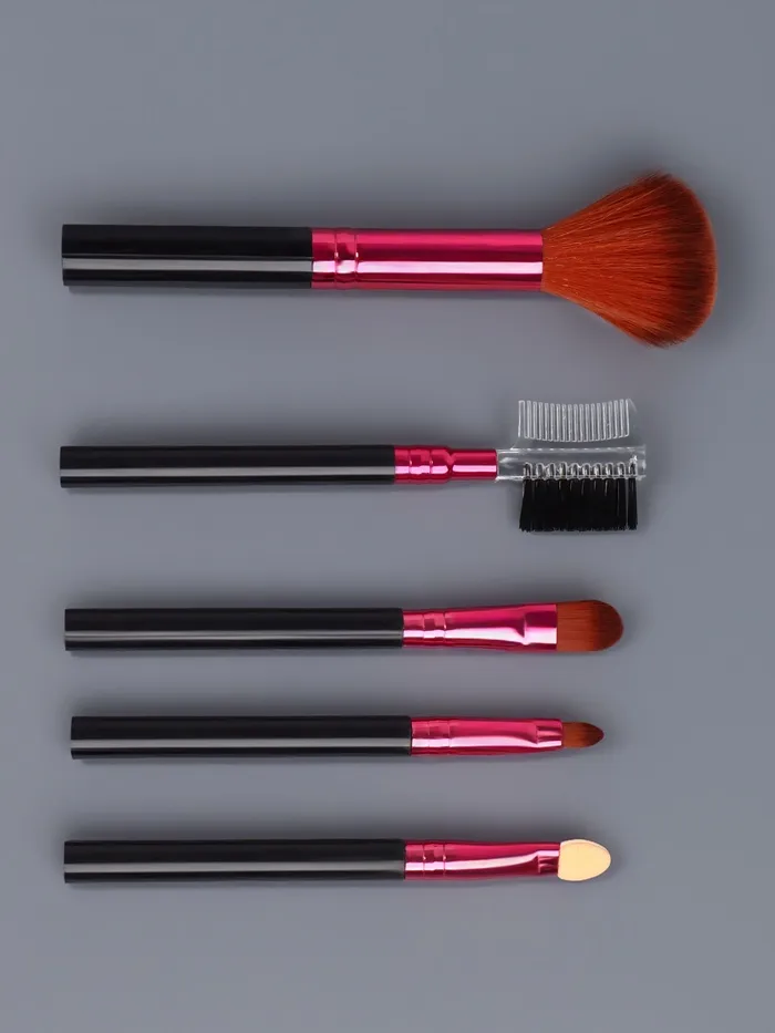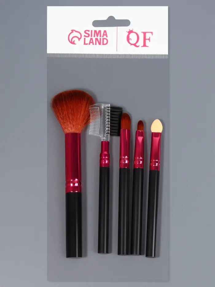Набор кистей для макияжа, 5 предметов, цвет чёрный/малиновый — Характеристики