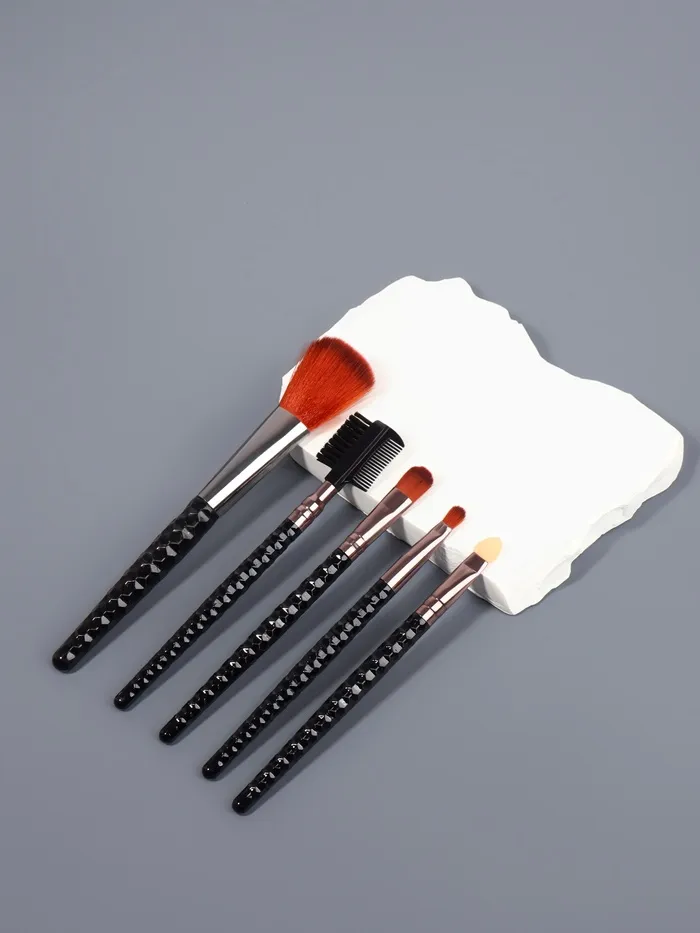 Набор кистей для макияжа, 5 предметов, цвет чёрный/розовое золото — Характеристики