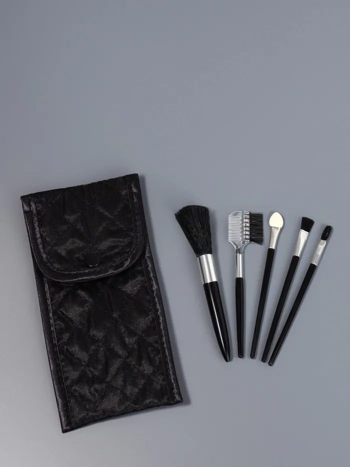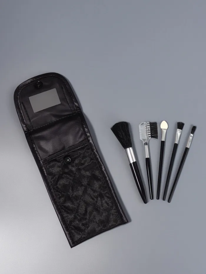 Набор кистей для макияжа Compact, 5 предметов, футляр с зеркалом, чёрный — Характеристики