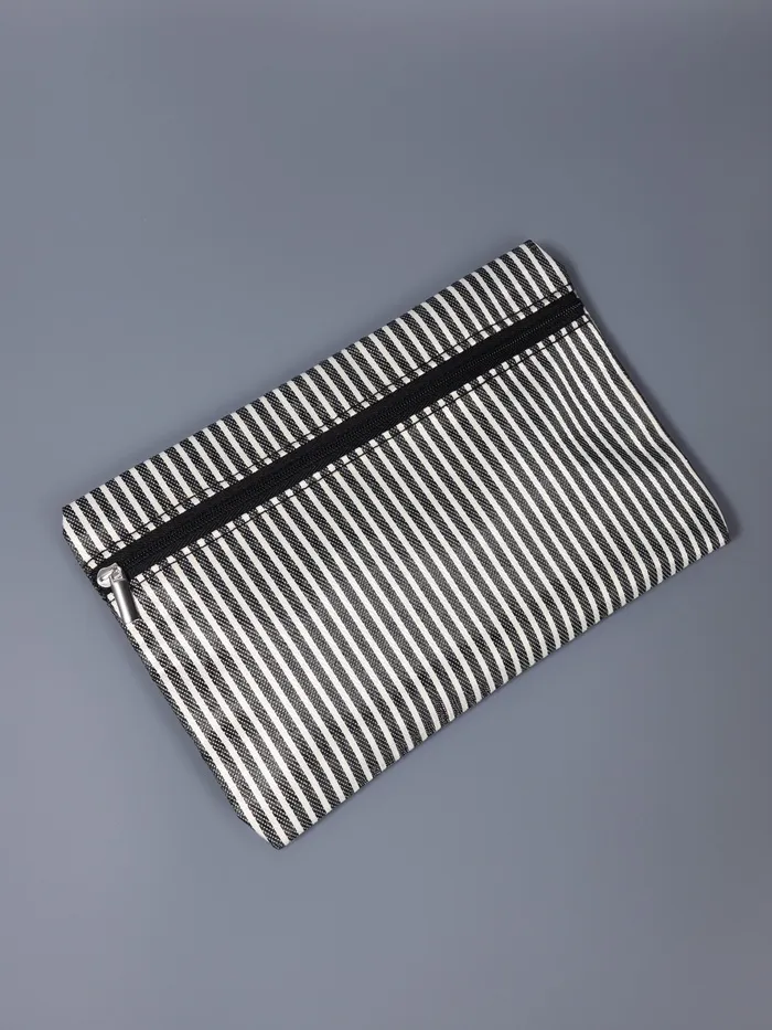 Набор кистей для макияжа «Полоски», 8 предметов, чехол на молнии, цвет белый/чёрный — Характеристики