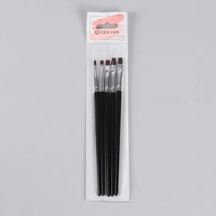 Набор кистей для наращивания и дизайна ногтей, плоские, 5 шт., 18 см, чёрный — Характеристики