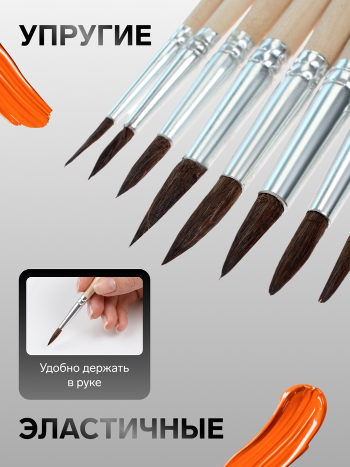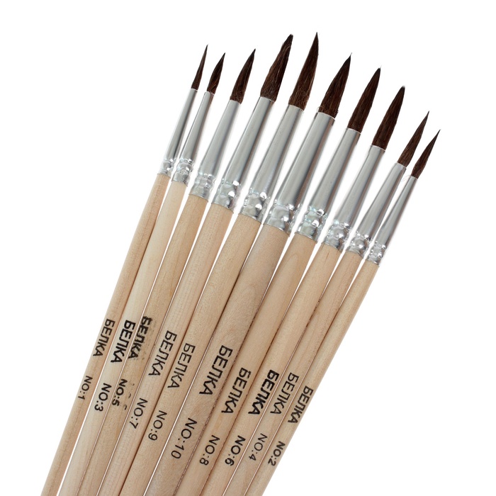 Набор кистей для рисования, белка, 10 штук: № 1, 2, 3, 4, 5, 6, 7, 8, 9, 10, Calligrata, круглые, деревянная ручка, международный размер — Характеристики