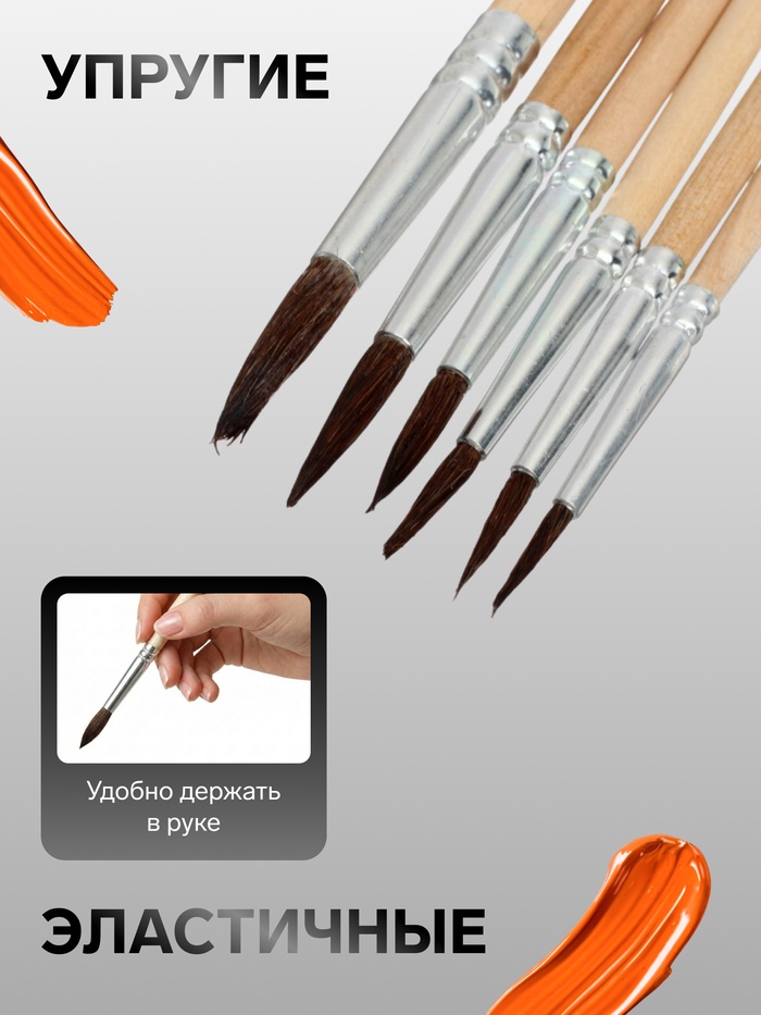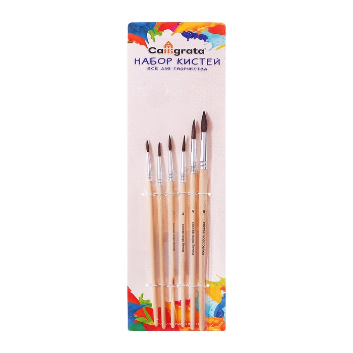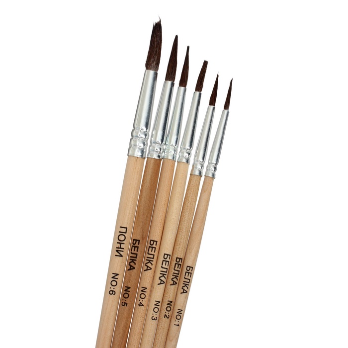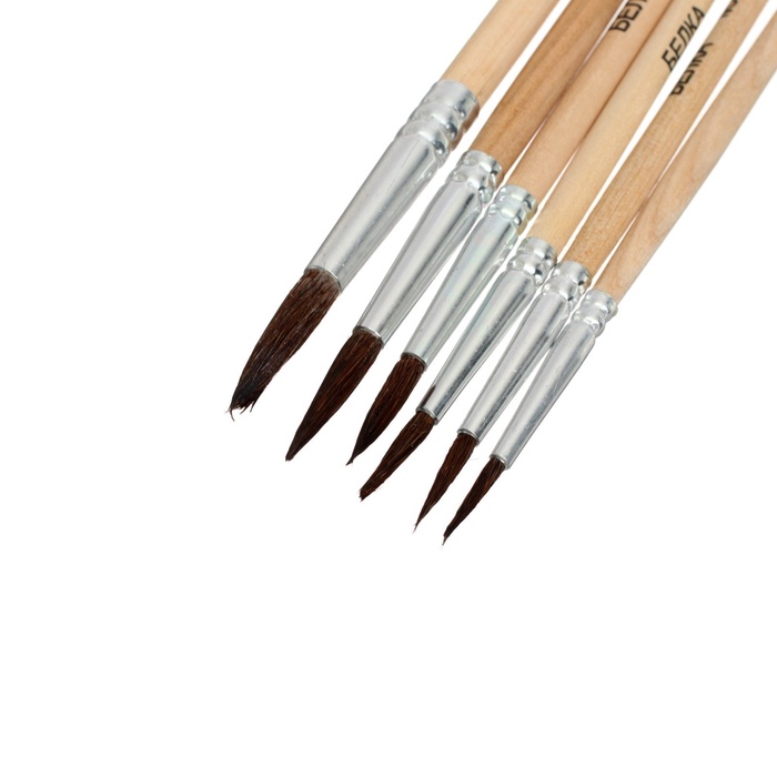 Набор кистей для рисования, белка, 6 штук: № 1, 2, 3, 4, 5, 6, круглые, деревянная ручка, международный размер — Характеристики